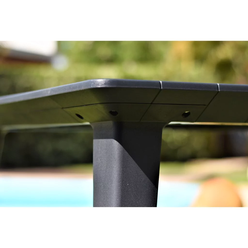 La Mesa Lima 240 Allibert es una mesa de exterior moderna, amplia y resistente, ideal para disfrutar reuniones al aire libre. Su diseño minimalista y robusto permite sentar hasta 10 personas cómodamente, mientras que su construcción en polipropileno reciclable asegura durabilidad frente al sol, la lluvia y el uso cotidiano. Es práctica, fácil de armar y no requiere mantenimiento, lo que la convierte en una opción perfecta para terrazas, jardines y quinchos que buscan funcionalidad con estilo.