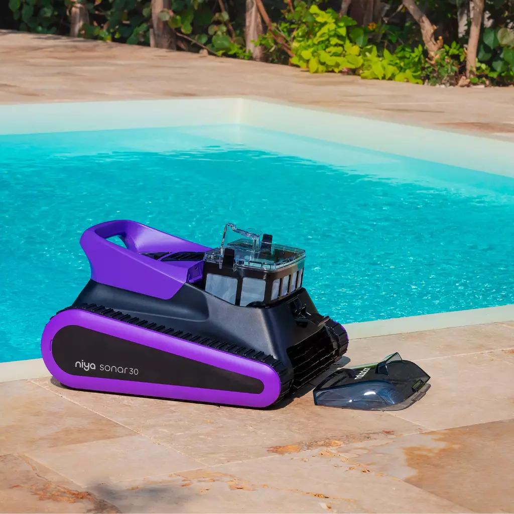 Niya Sonar 30, el limpiafondo inalámbrico diseñado para simplificar el mantenimiento de tu piscina. Con su tecnología de navegación inteligente y su potente succión, este robot limpiafondos te permitirá disfrutar de una piscina impecable sin esfuerzo.